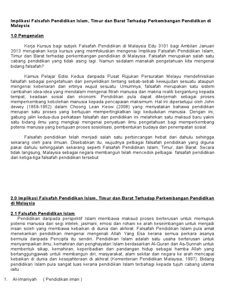 Implikasi Falsafah Pendidikan Islam Timur Barat Pdf